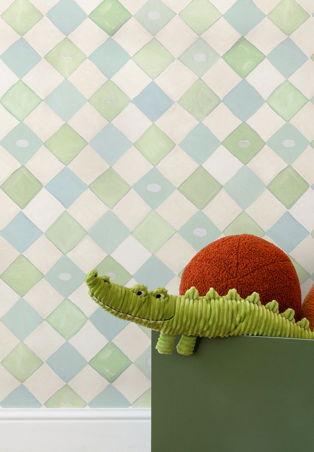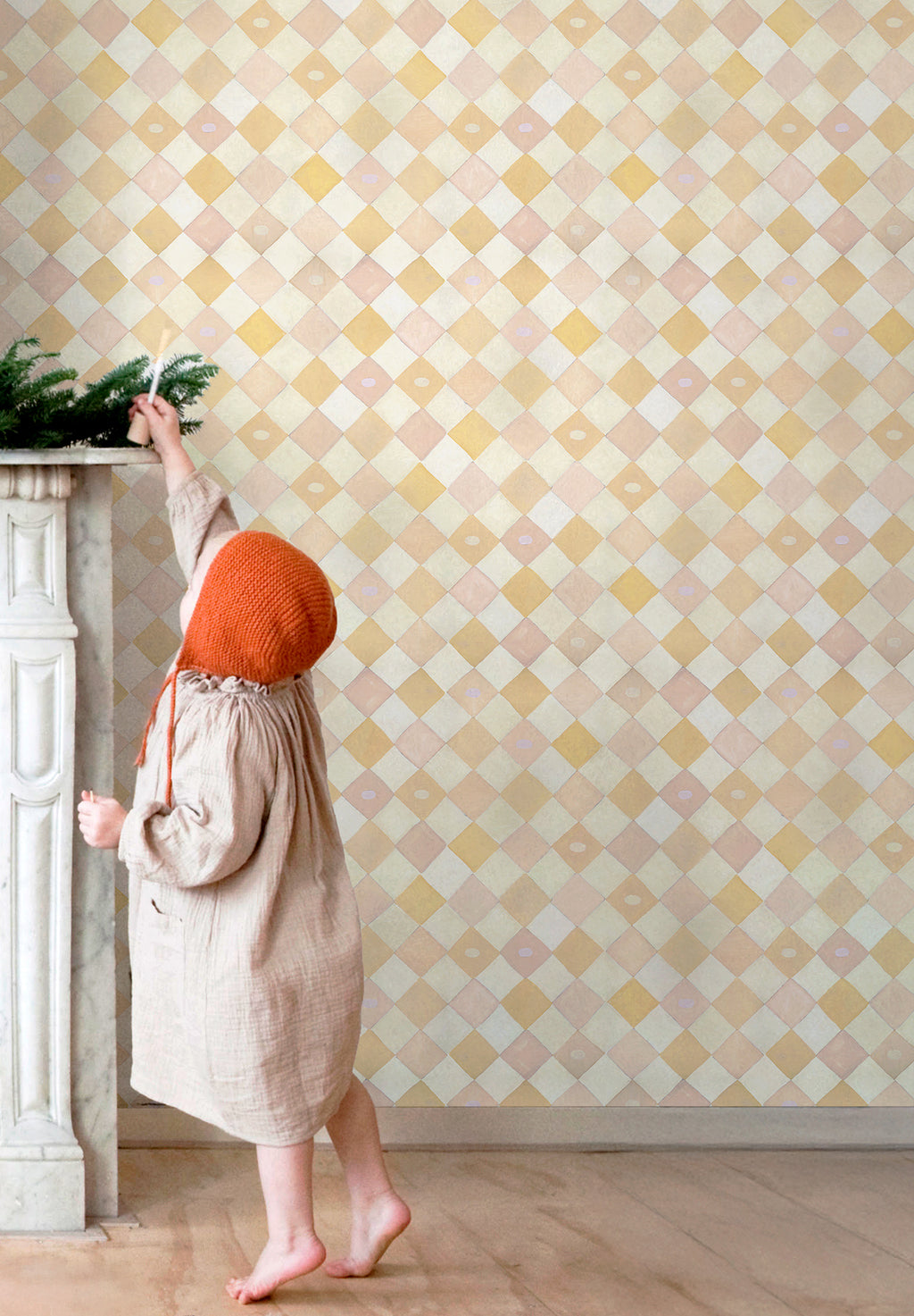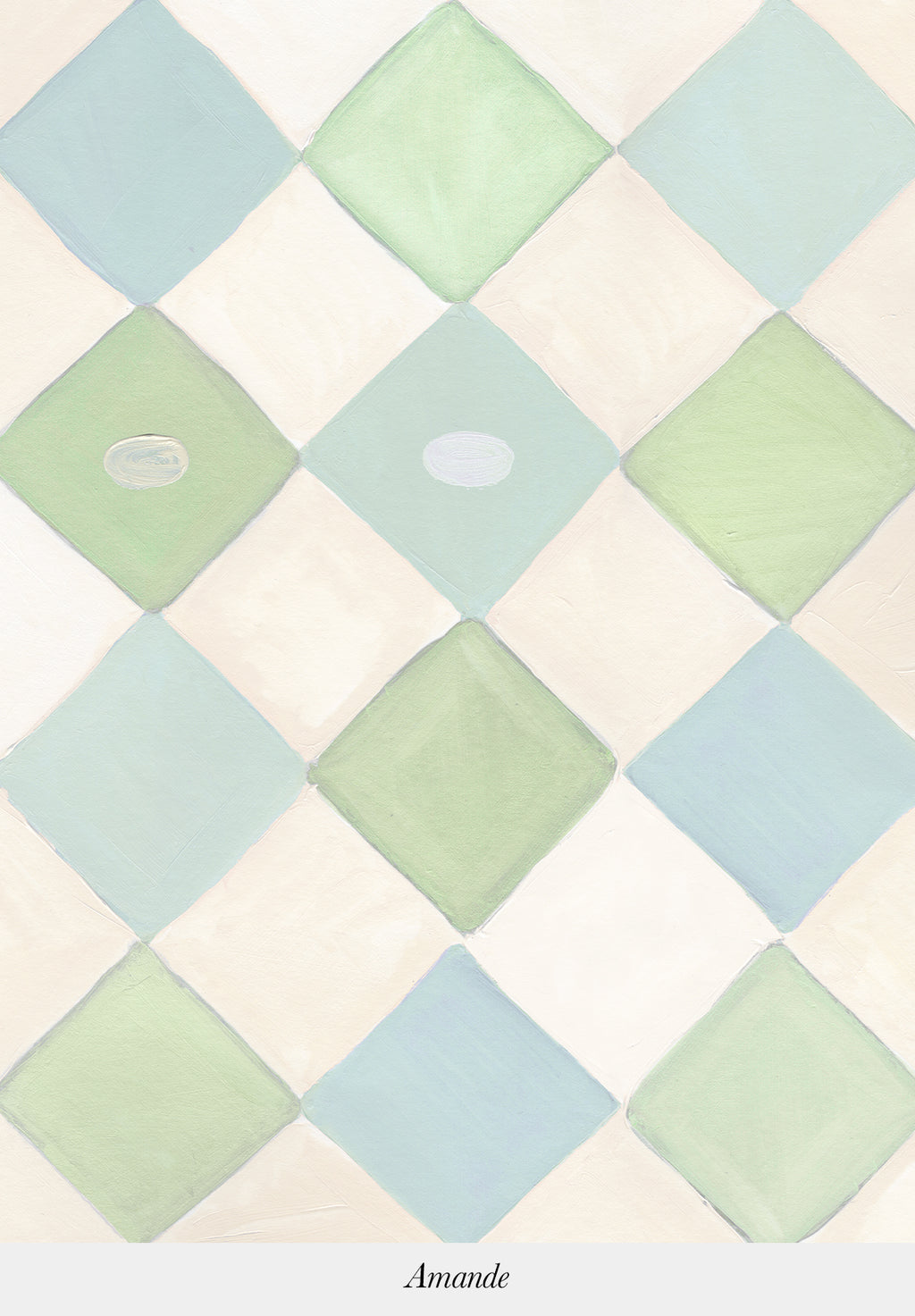 A geometric dance brought to life by hand-painted, irregular diamonds. The Arlequin design embraces a playful spirit with its vibrant colors.