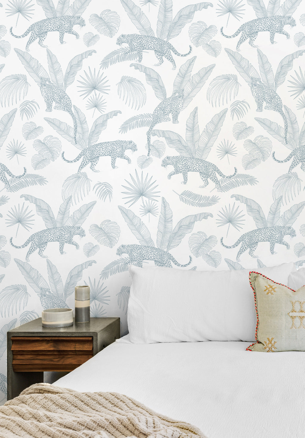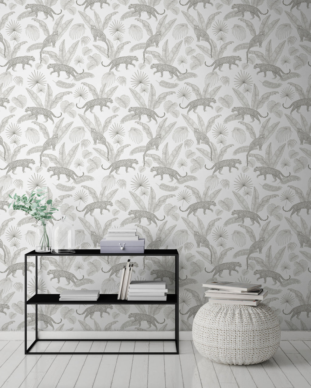 This wallpaper with plant and animal motifs signed by Stéphanie van de Walle invites itself with softness and elegance in your interiors for an exotic escape. Customizable color.