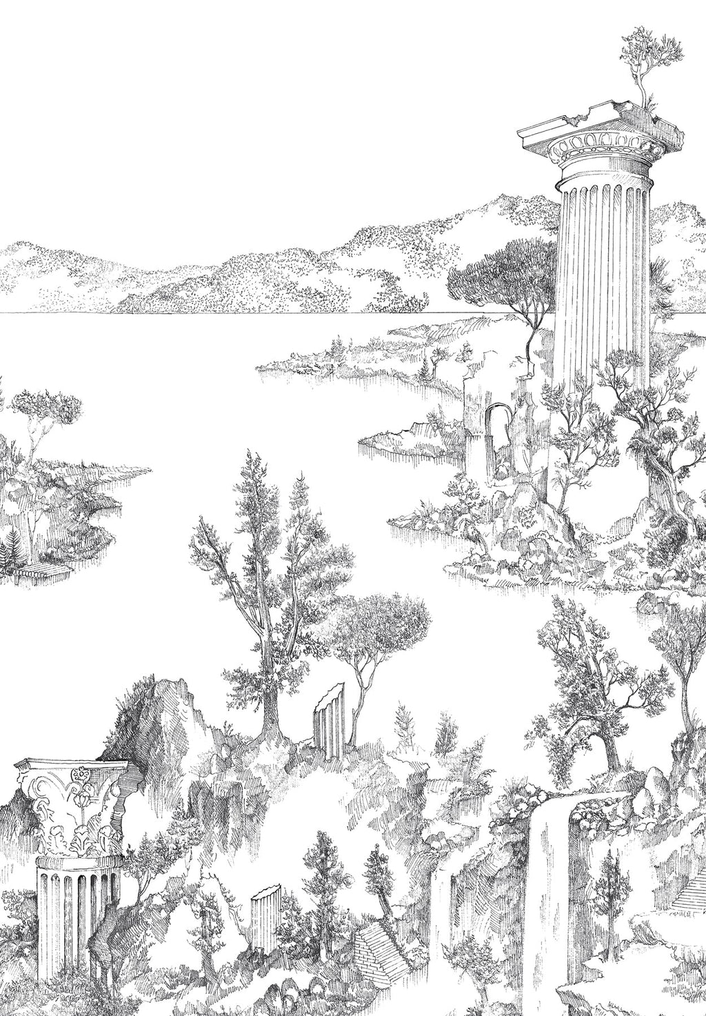 Octave Marsal produces virtuoso drawings in which periods and subjects intertwine and overlap. For him, the proliferation of architectural elements and details in his work calls for a close-up view and encourages the viewer to experience a meditative journey. Loving to work over a long period of time, his richness is found in the detail and finesse of his features.
