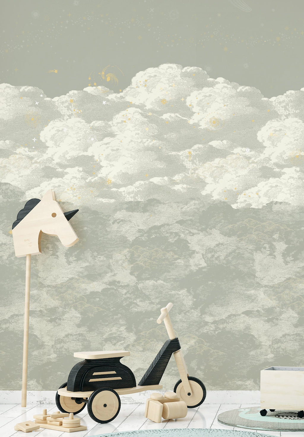 Cosmos is a gradient of clouds on a starry background. It is a pattern of 3m wide repeatable sold by panels of 1.5m wide. Panoramic pattern with repetition.