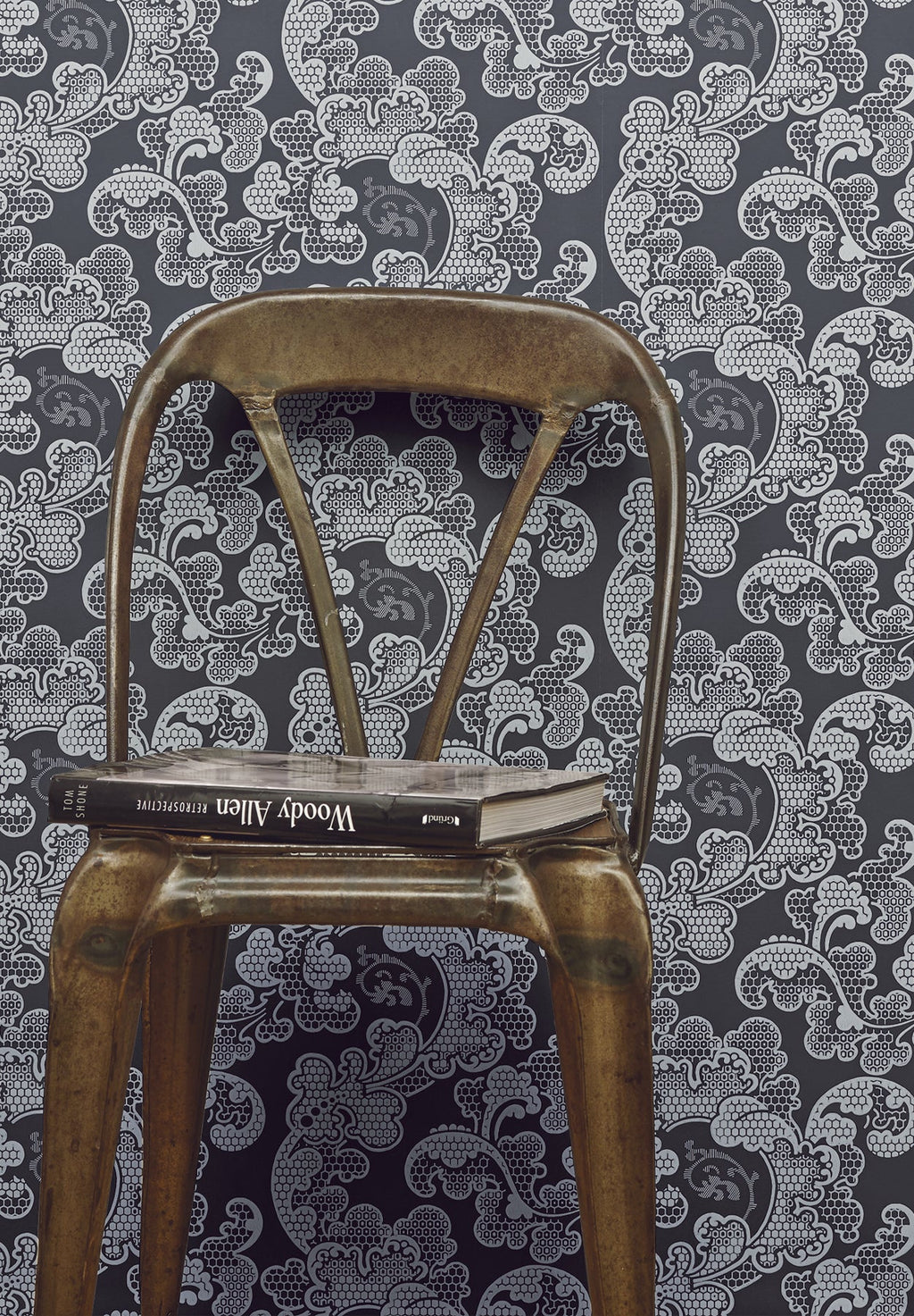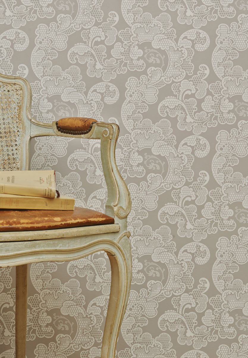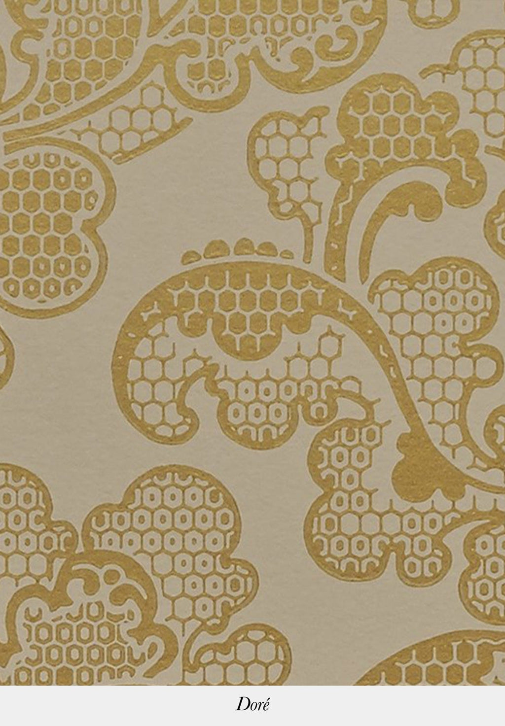 All curves, this wallpaper is punctuated by the undulations of a luxuriant foliage with clusters of fleshy flowers. The metallic accents underline the multiple, more or less pronounced cells which give it a certain elegance.