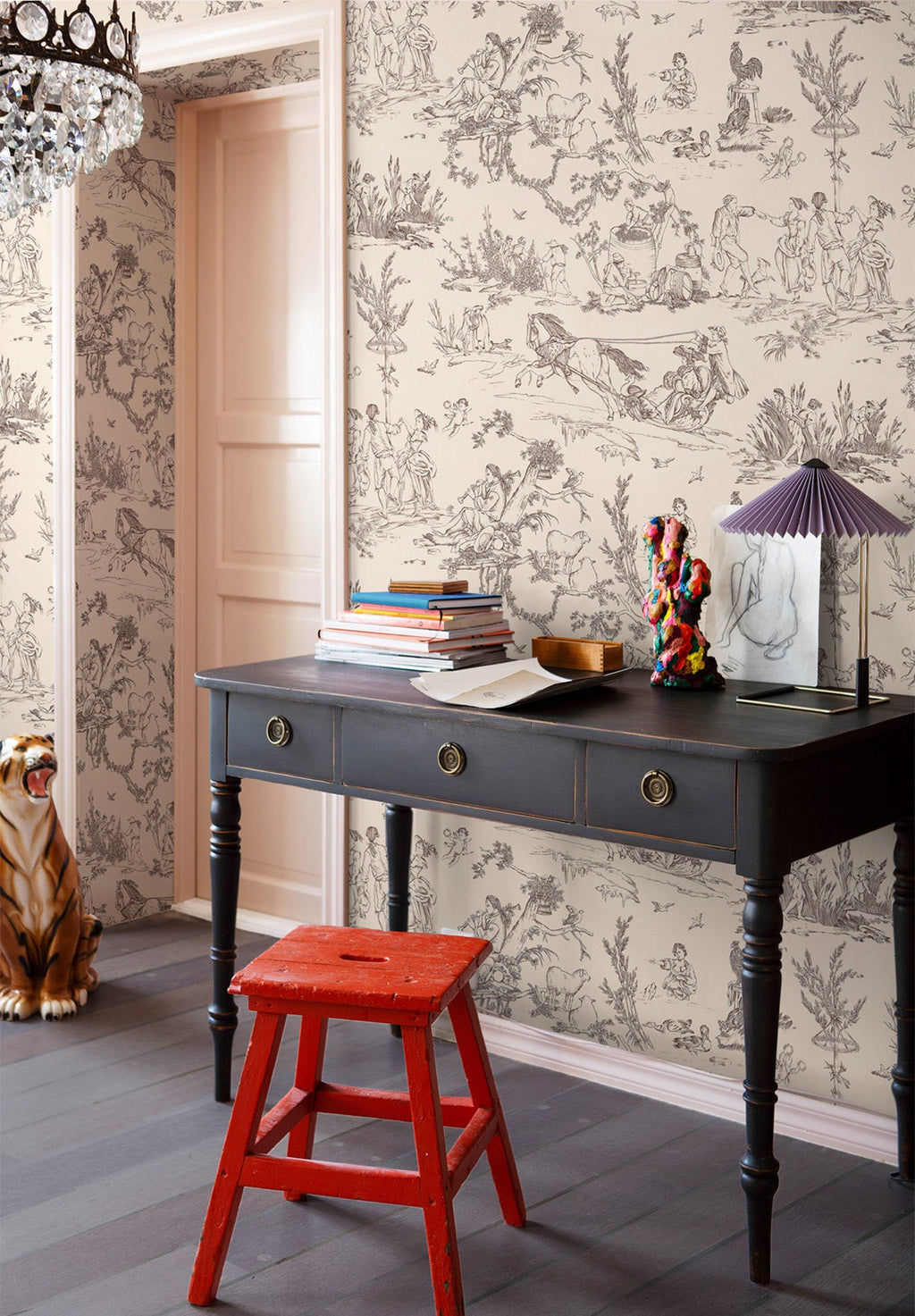 Gally is a toile de Jouy whose scenes are a pastoral monochrome of the period, highlighting a bucolic vision of an abundant and prosperous nature, linking the seasons.