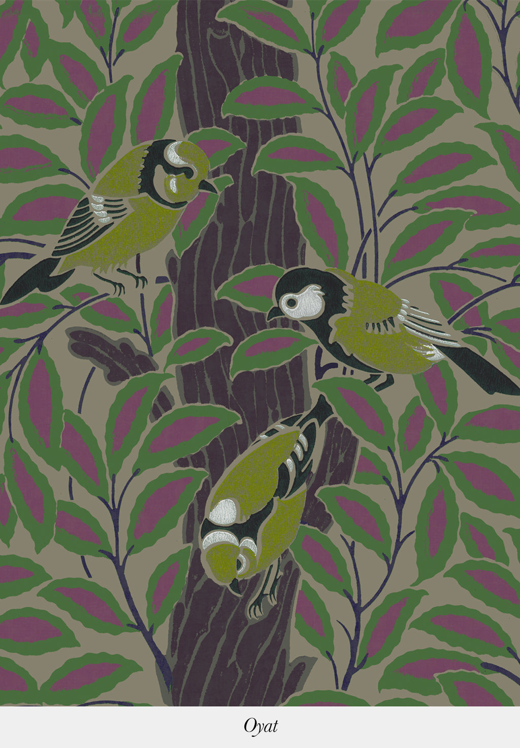 This original work is a six-color gouache, printed by Isidore Leroy as early as 1925. Delicate foliage and cheerful tits bring this enchanted undergrowth to life, in a composition filled with vibrant colors emblematic of the artist E. A. Séguy.