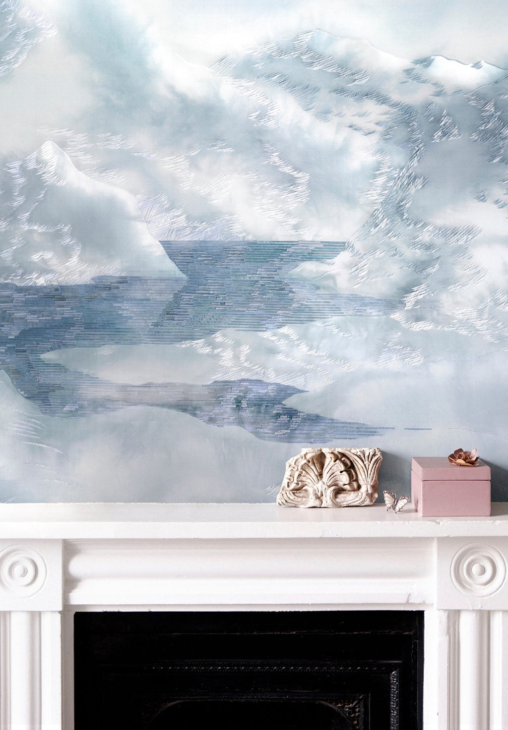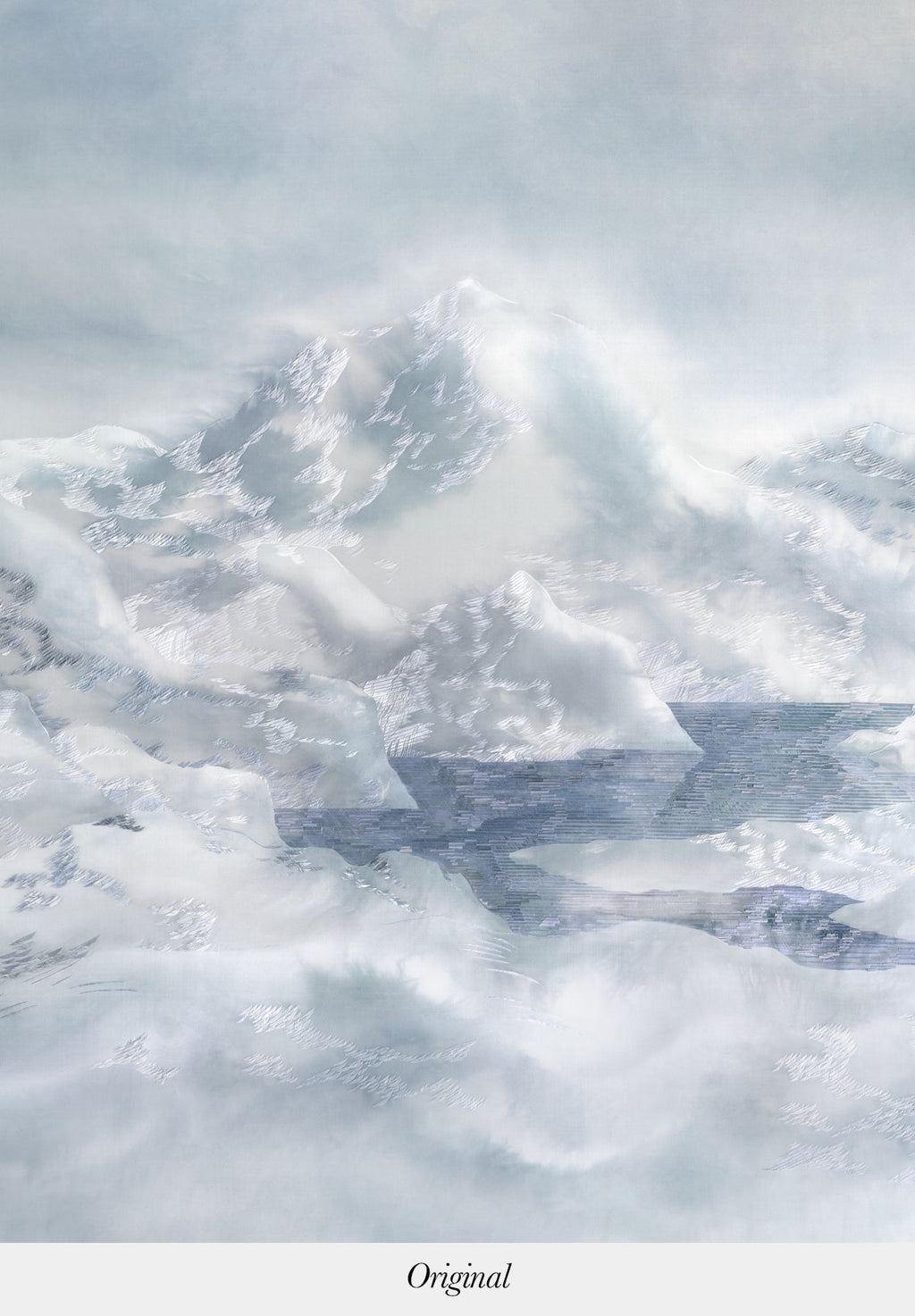 Écumes is a design made from needlepoint on dyed silk by Clémentine Brandibas.With "Écumes", the artist explores the texture of the ocean by developing an organic and fluid composition made up of a myriad of lines and microscopic points playing with light.