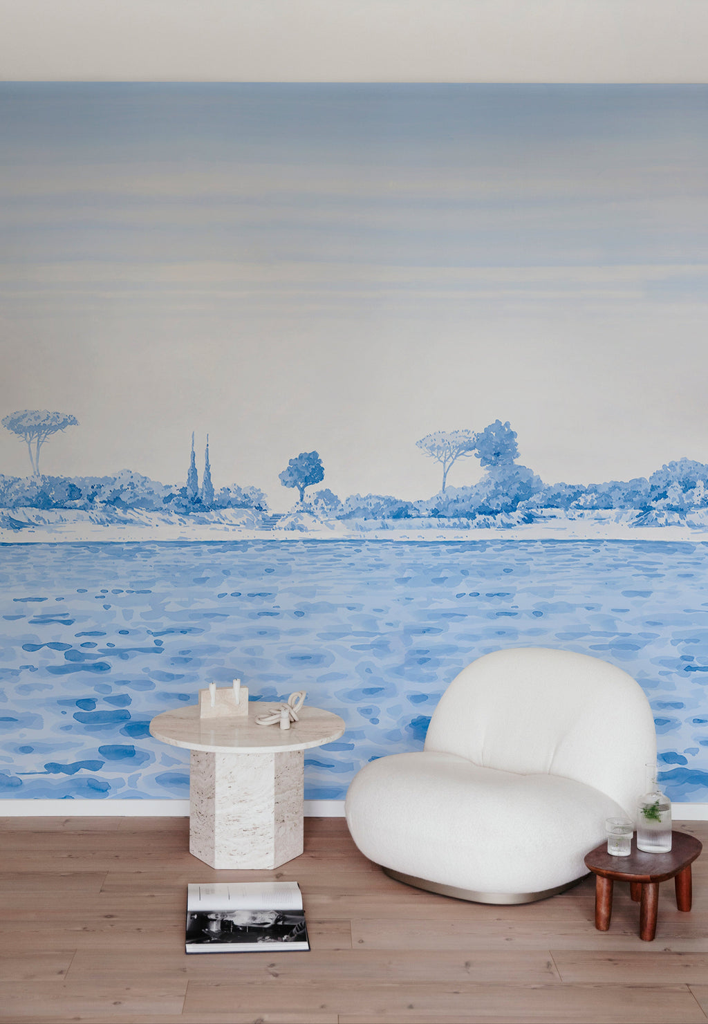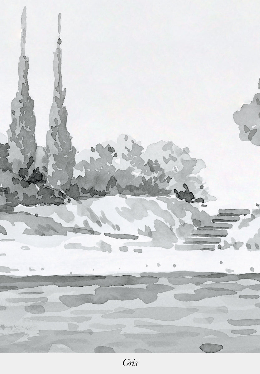 Bertrand Cure is passionate about art. Illustrator, decorator and interior designer for over 15 years, he draws his inspiration from his travels and his second passion, fashion.Rivage is a watercolor drawing that takes us to the coasts of Provence, echoing the nostalgia of past eras, the artist offers an original creation resolutely modern, colorful and joyful.