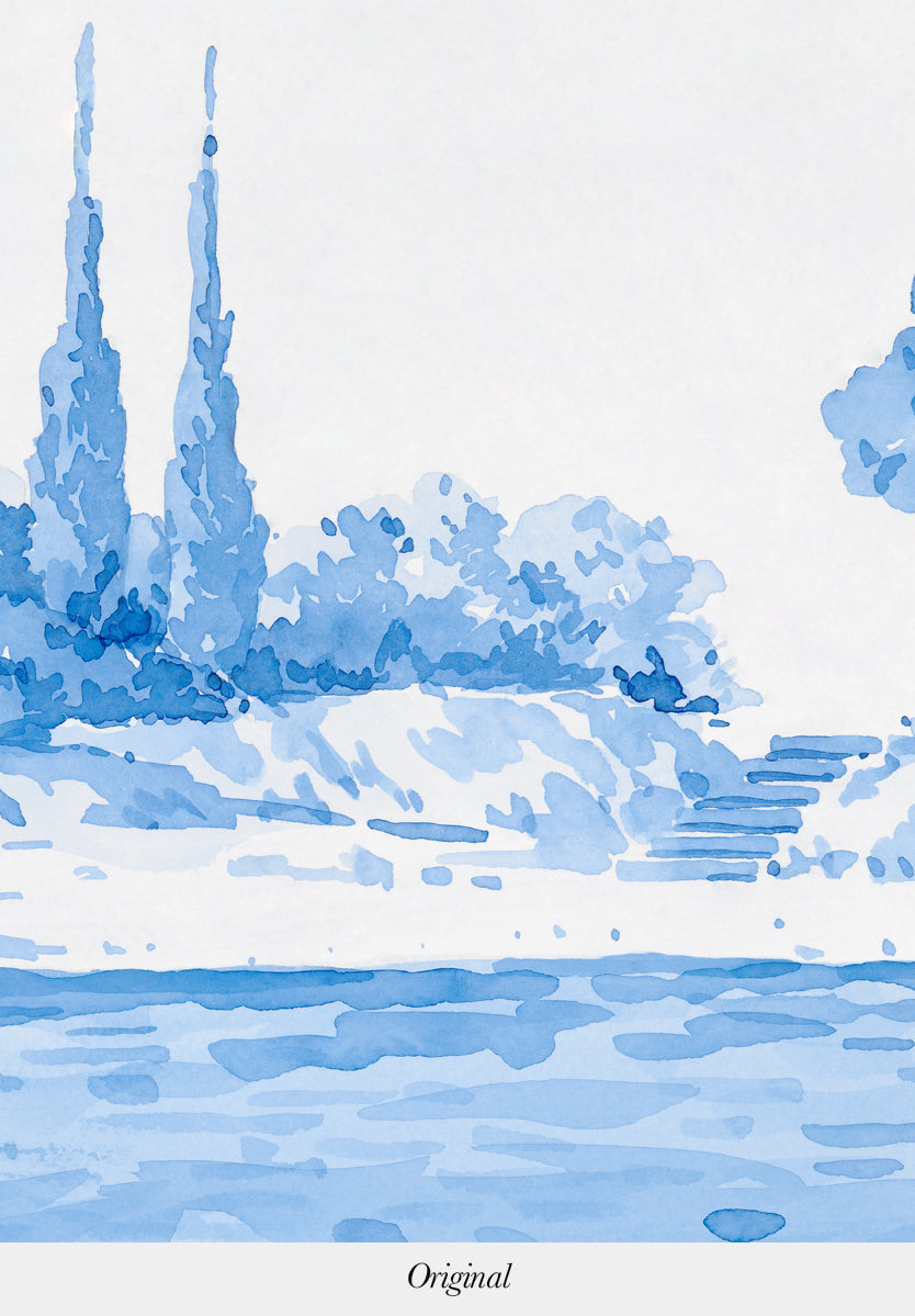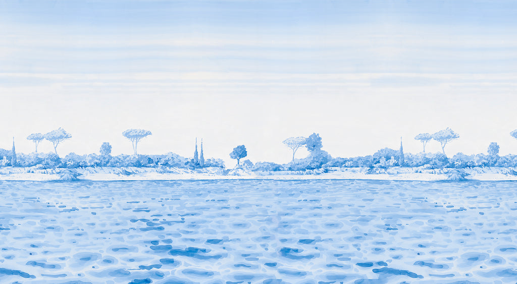 Rivage is a watercolor drawing that takes us to the coasts of Provence, echoing the nostalgia of past eras, the artist offers an original creation resolutely modern, colorful and joyful.